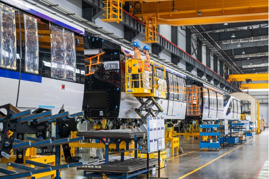 Unmanned rail transit cars are manufactured in a workshop at CRRC Puzhen Alstom Transportation System Limited in Wuhu, East China's Anhui Province. (Photo: People's Daily/ Xiao Benxiang)