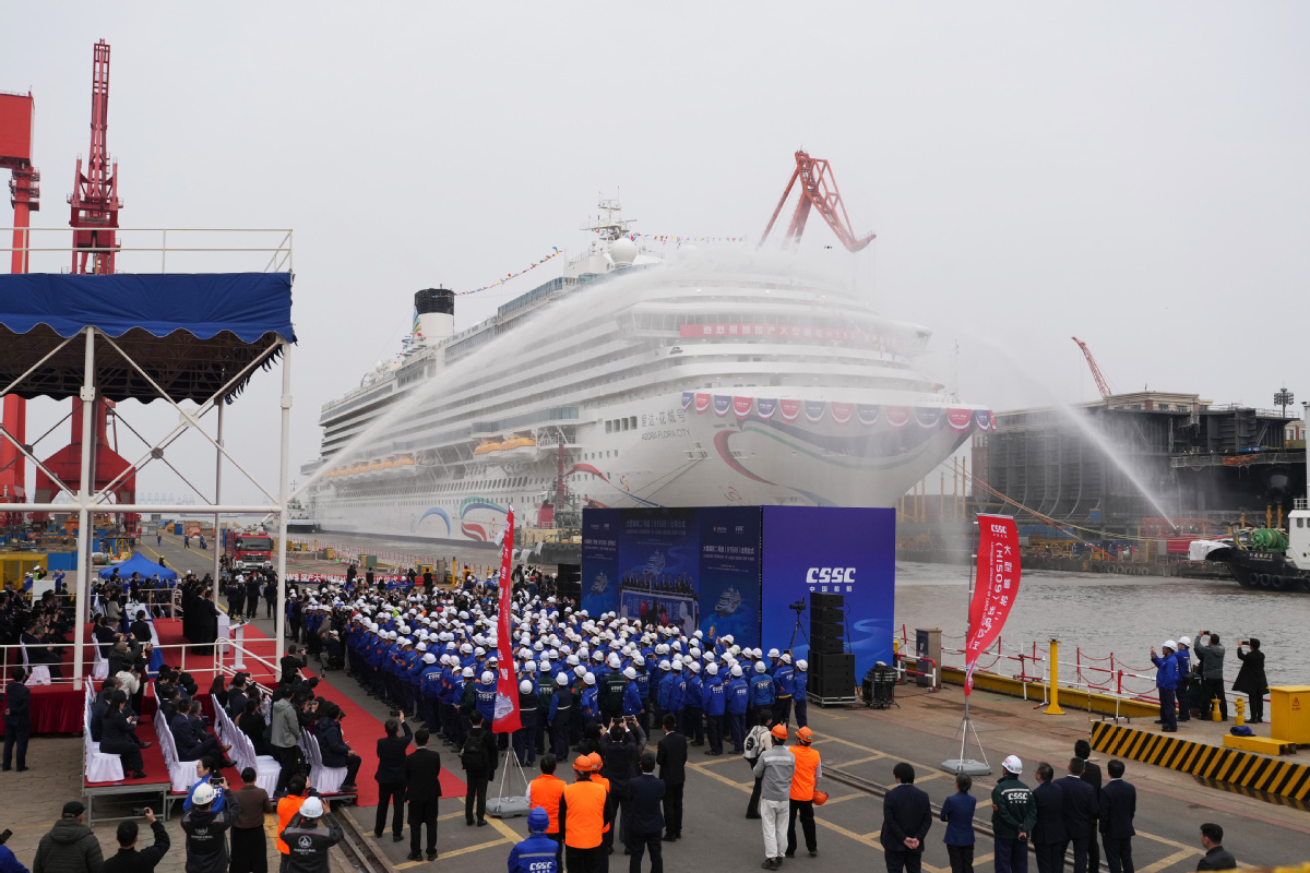 China's second domestically built large cruise ship Adora Flora City is undocked in Shanghai, East China, March 20, 2026. [Photo by Gao Erqiang/chinadaily.com.cn]
