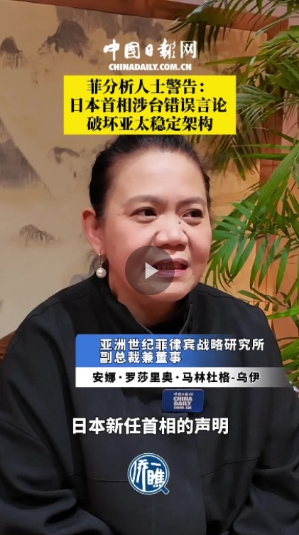 中国日报网12月4日电(记者 潘一侨) 针对日本新任首相高市早苗近期就台湾问题发表的一系列错误言论,亚洲世纪菲律宾战略研究所副总裁安娜·马林杜格-乌伊接受中国日报的专访。