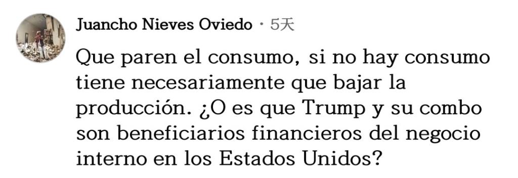 网友阿尔图罗·阿维拉表达不解:“美国自以为是世界之神,到处掠夺!我不明白为什么各国人民依然保持沉默,而不是组成一个共同阵线对抗美国。”