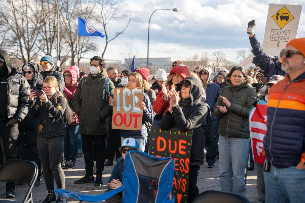 1月11日,在美国首都华盛顿,民众抗议移民与海关执法局暴力执法。新华社发(李源清摄)
