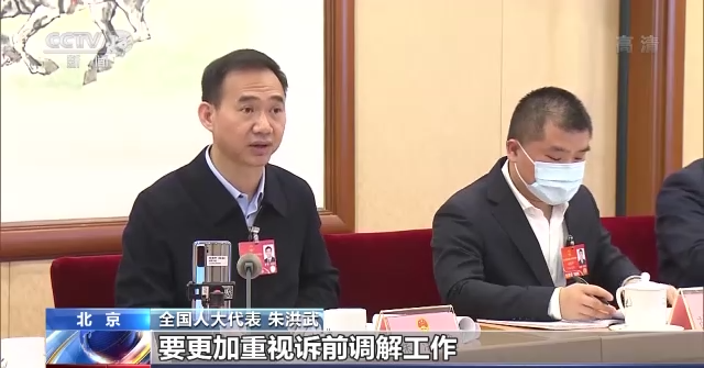 全国人大代表 朱洪武:要更加重视诉前调解工作,是不是我们在之前有更多的部门联合加强诉前调解,把有关的法律问题说清楚,我觉得这种可能是解决诉讼的一个很好的办法。