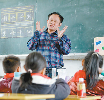 59岁的孟荣达是贵州省黔东南苗族侗族自治州从江县西山镇人,当了一辈子的乡村教师。大学毕业回乡后,他先后到捞里、顶洞、滚郎等村小任教。前些年,高脚村中寨教学点因教学条件差、师资流失多,发展逐年滑坡。2015年8月,镇里安排长期扎根基层、表现优秀的孟荣达到高脚村中寨教学点任教。