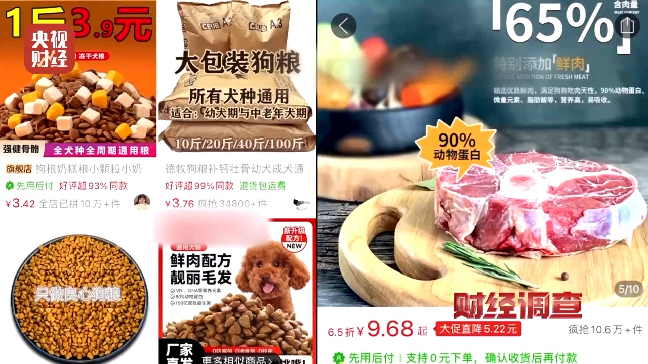 为了节约成本,商家会降低粗蛋白质指标,包装标注却不变。为了增添卖点,所谓的“鲜肉入粮”,实则用肉粉冒充鲜肉,可谓投机取巧。