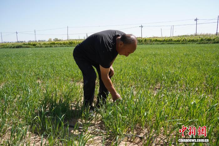 图为许忠厚查看燕麦草生长情况。侯旭佳摄