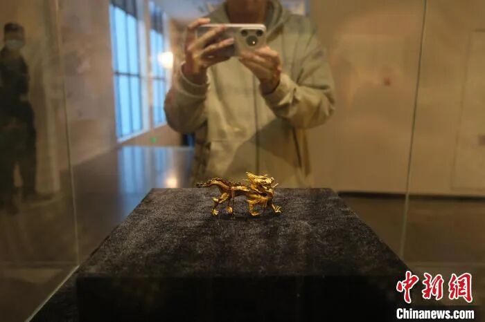 2024年12月1日,“投龙——从山川祭祀到洞天福地”特展在浙江杭州启幕。图为观众在杭州西湖出水的北宋金龙前驻足拍照。曹丹摄