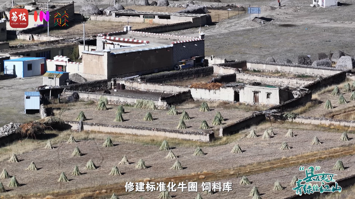 “这些草料都是您家的牦牛平时吃的草吗?”在郭庆村,记者遇到了正在收拾草垛的家庭牧场牧民旦增多吉。