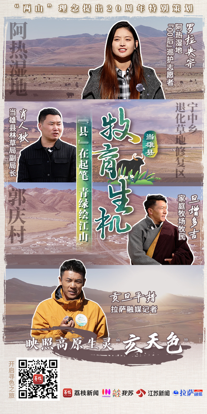 当雄在藏语里意为“天选的牧场”,这份“天选”,离不开大自然的馈赠。“我们刚刚路过的小溪,就是念青唐古拉山的冰川流水,它经过天然的过滤流到这里,灌溉了我们的这片草场。”在素有“当雄之肺”美誉的阿热湿地,“00后”巡护志愿者罗拉央宗向记者介绍道。这里独特的生态环境对整个当雄的天然草场资源保护都起到了支撑作用。