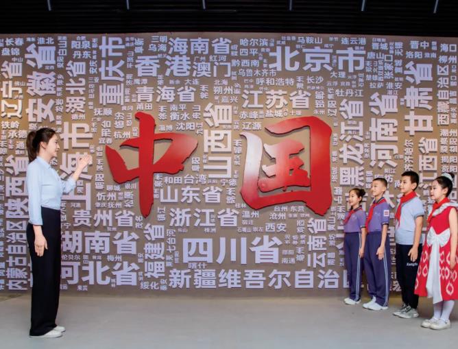 西部计划志愿者在和田地区铸牢中华民族共同体意识宣传教育馆为孩子们宣讲 图源:“共青团中央”微信公众号