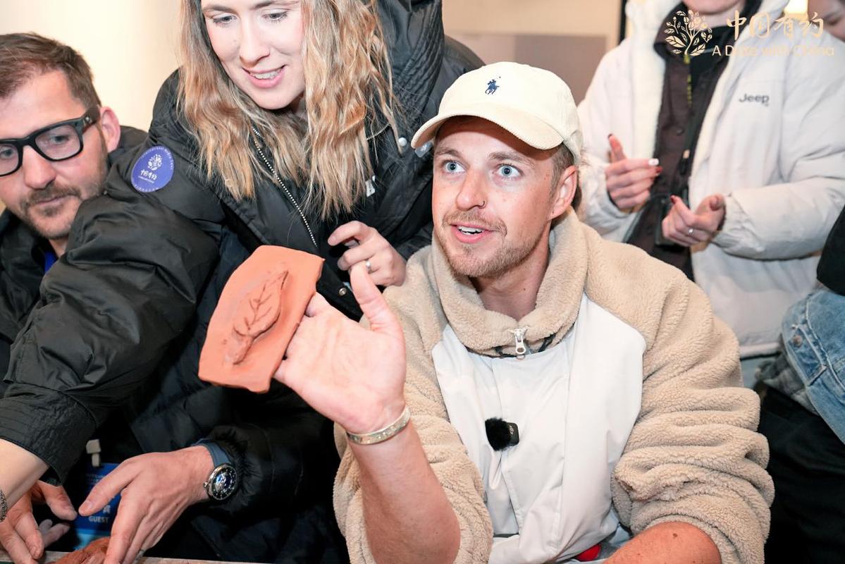 外国朋友展示自己的“泥人”制作。