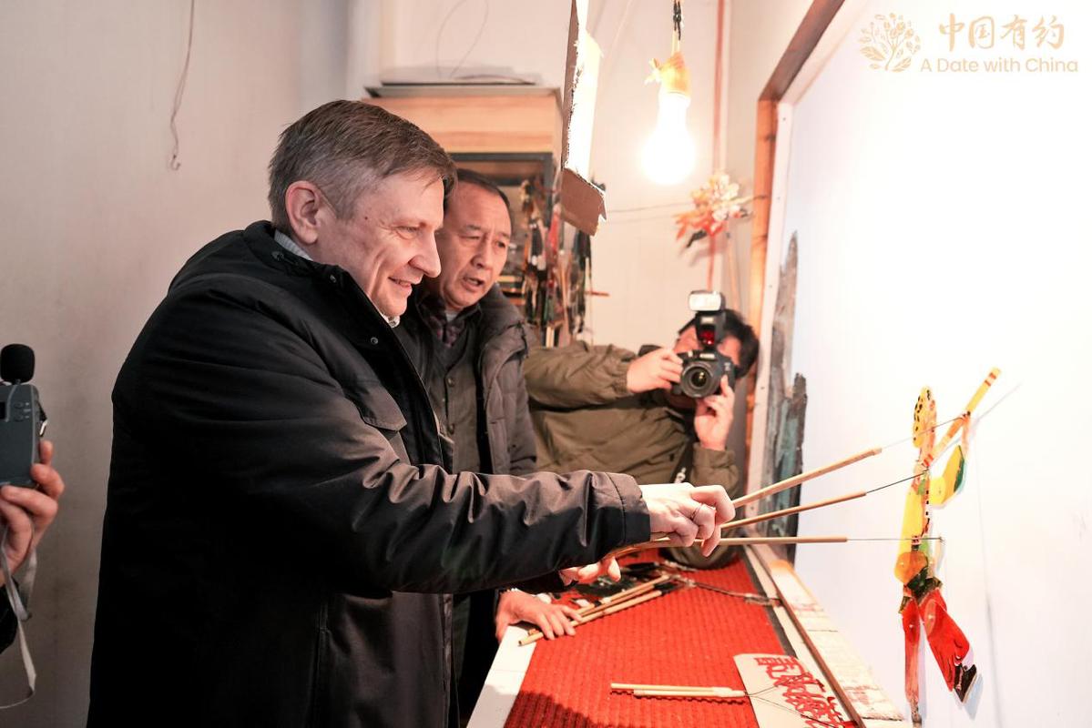 外国朋友体验皮影戏表演。作为天津的文化名片,在新业态、新功能的滋养下,传统的古文化街向新而生,在唤醒人们对地域文化的认同感和归属感的同时,也吸引着八方游客来此“打卡”,成为游客了解天津历史文化的重要场所。