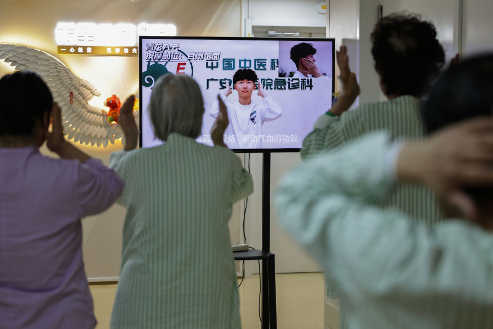 2月9日7时许,急诊病房住院病人在病房内练习中医养生操。