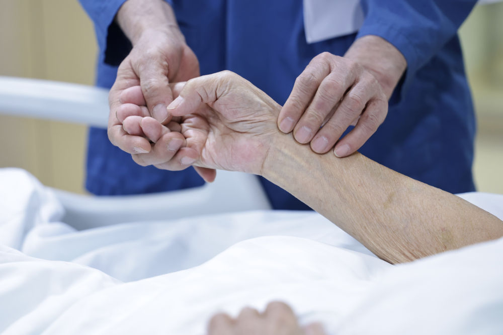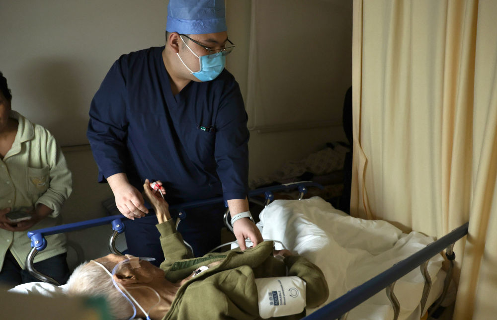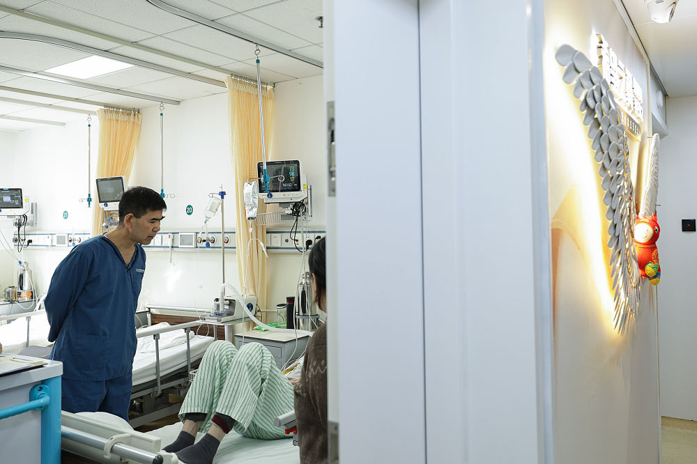 2月12日11时许,一名护士在重症监护室为一名患者进行电热砭石技术操作。