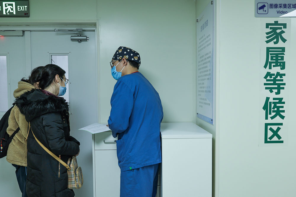2月4日3时许,重症监护室的护士对家属进行入院宣教。