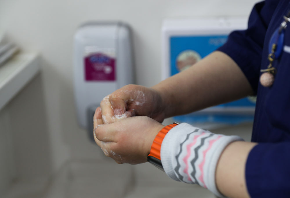 2月4日0点41分,护士接触病患后用七步洗手法洗手。