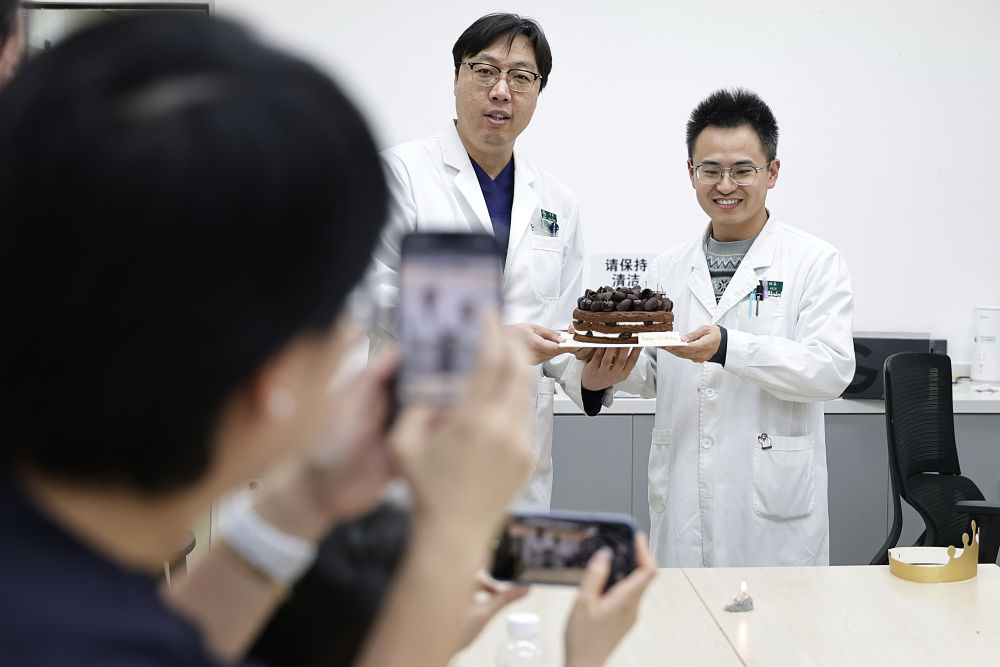 2月5日19时许,两位急诊科医生在休息室内庆祝生日。