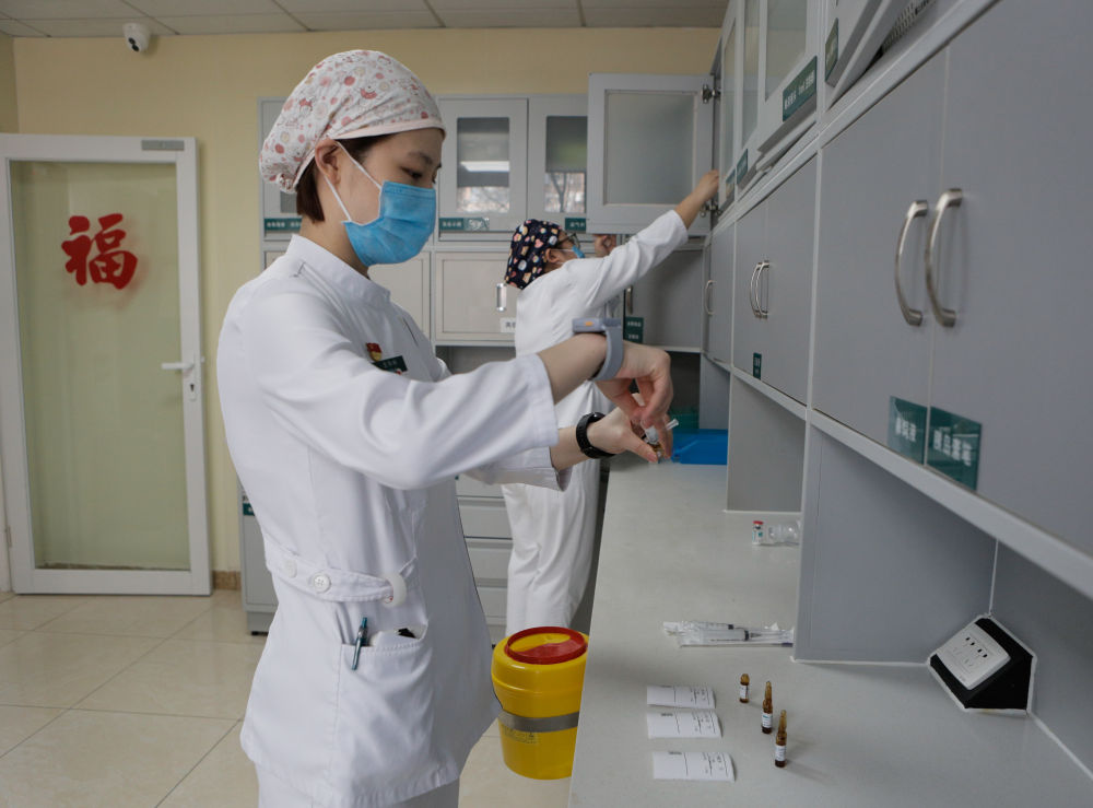 2月12日13时许,护士为患者配液。