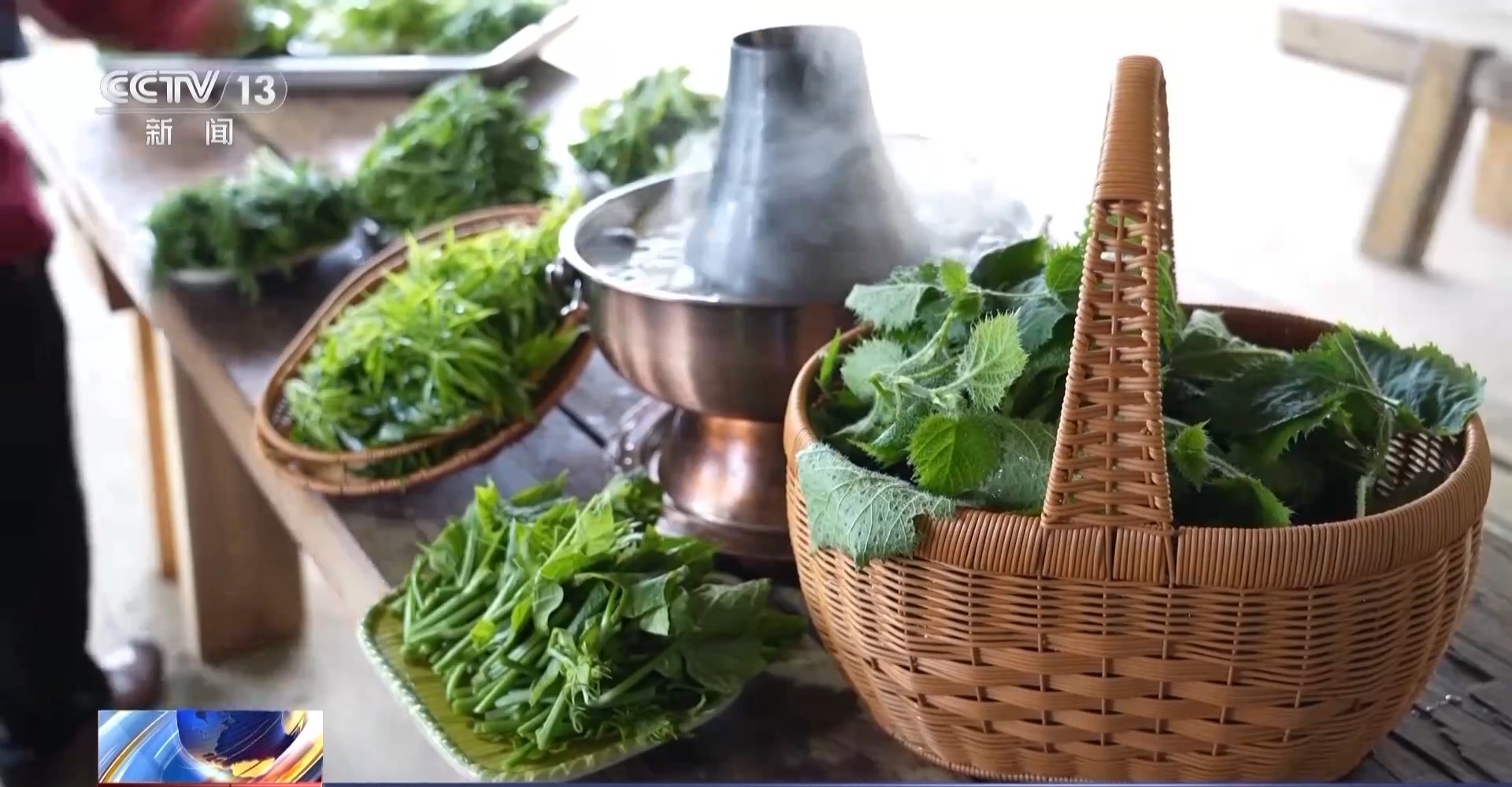 窜龙村村民 段生济:我们放荨麻根,要等水烧开。现在水沸腾了,我们把这个荨麻根放下去,今天我们的主菜就是这个。