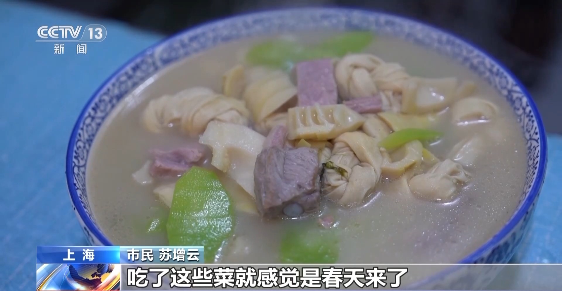 市民 苏增云:我们就喜欢烧腌笃鲜,感觉很好吃,吃了这些菜就感觉春天来了。