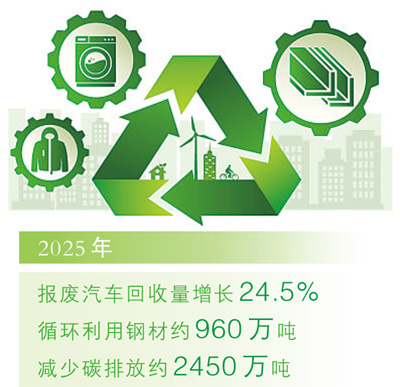 今年的《政府工作报告》提出,“大力发展绿色低碳经济”“强化再生资源循环利用”。随着“两新”政策实施,各地进一步加大技术创新、畅通产业链条,大力开发“城市矿山”,不断提高再生资源的回收率和利用率。