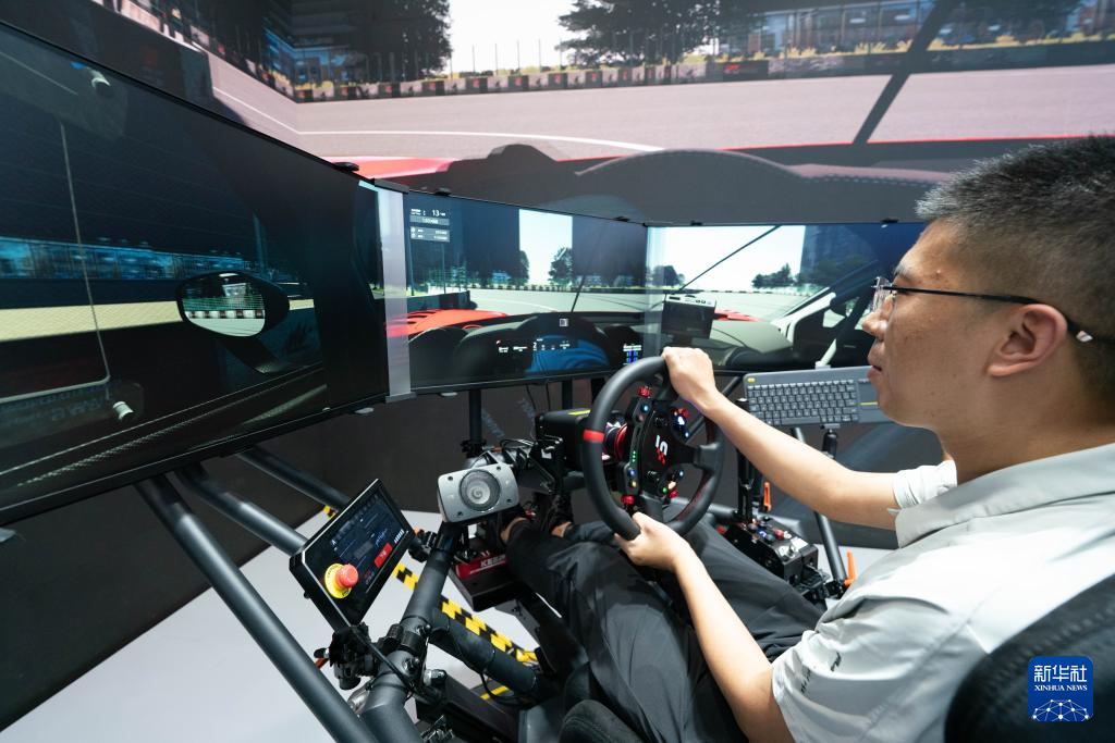 9月11日,参展者在文旅服务专题展区海淀展厅体验沉浸式VR大空间项目。