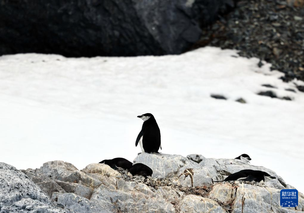 这是12月15日在南极洲拍摄的帽带企鹅。新华社发(杨树摄)