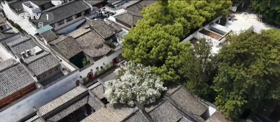 在福建福州三坊七巷的坊巷古厝里,几株百年流苏树如约绽放。微风拂过,花香扑鼻,洁白的流苏花穗与白墙黛瓦相映成趣,吸引了不少游客慕名而来。